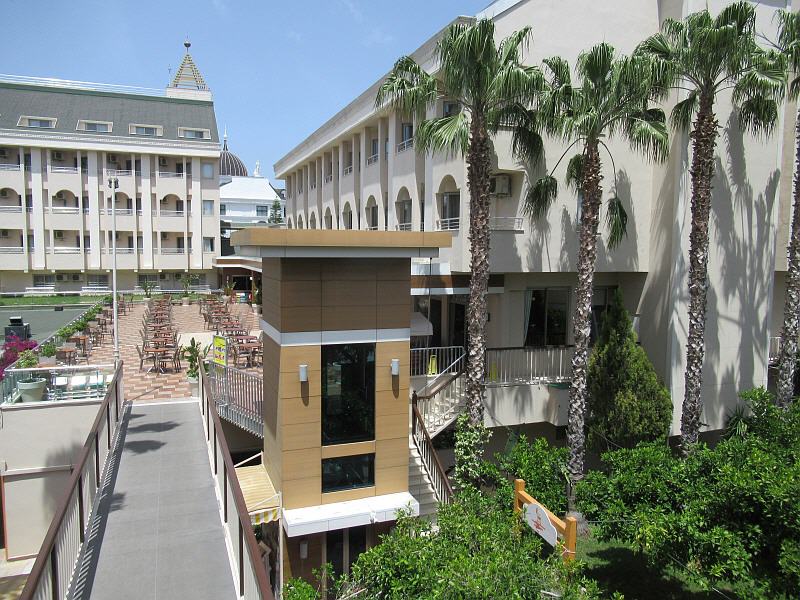 Das familienfreundliche Vier-Sterne-Hotel umfasste ein größeres Terrain, welches durch eine Straße geteilt wird. Das 5-stöckige Haupthaus sowie die 4 5-stöckigen Nebengebäude befanden sich in einer mit Palmen bewachsenen Gartenlandschaft.